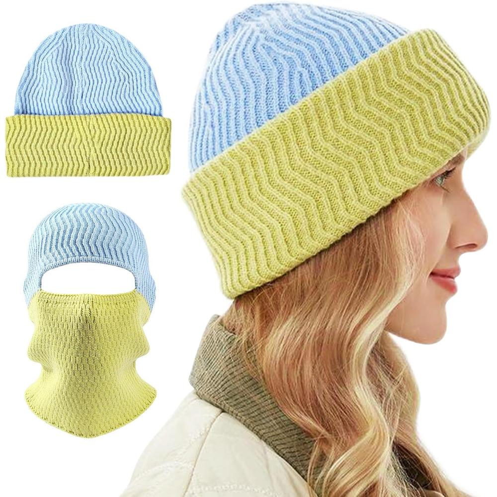 BROKIG 2 in 1 Balaclava Ski Mask Beanie Black Ski Face Mask Winter Warm Skull Cap Beanie Hats for Men Women Headwear(Light Blue-light Green)