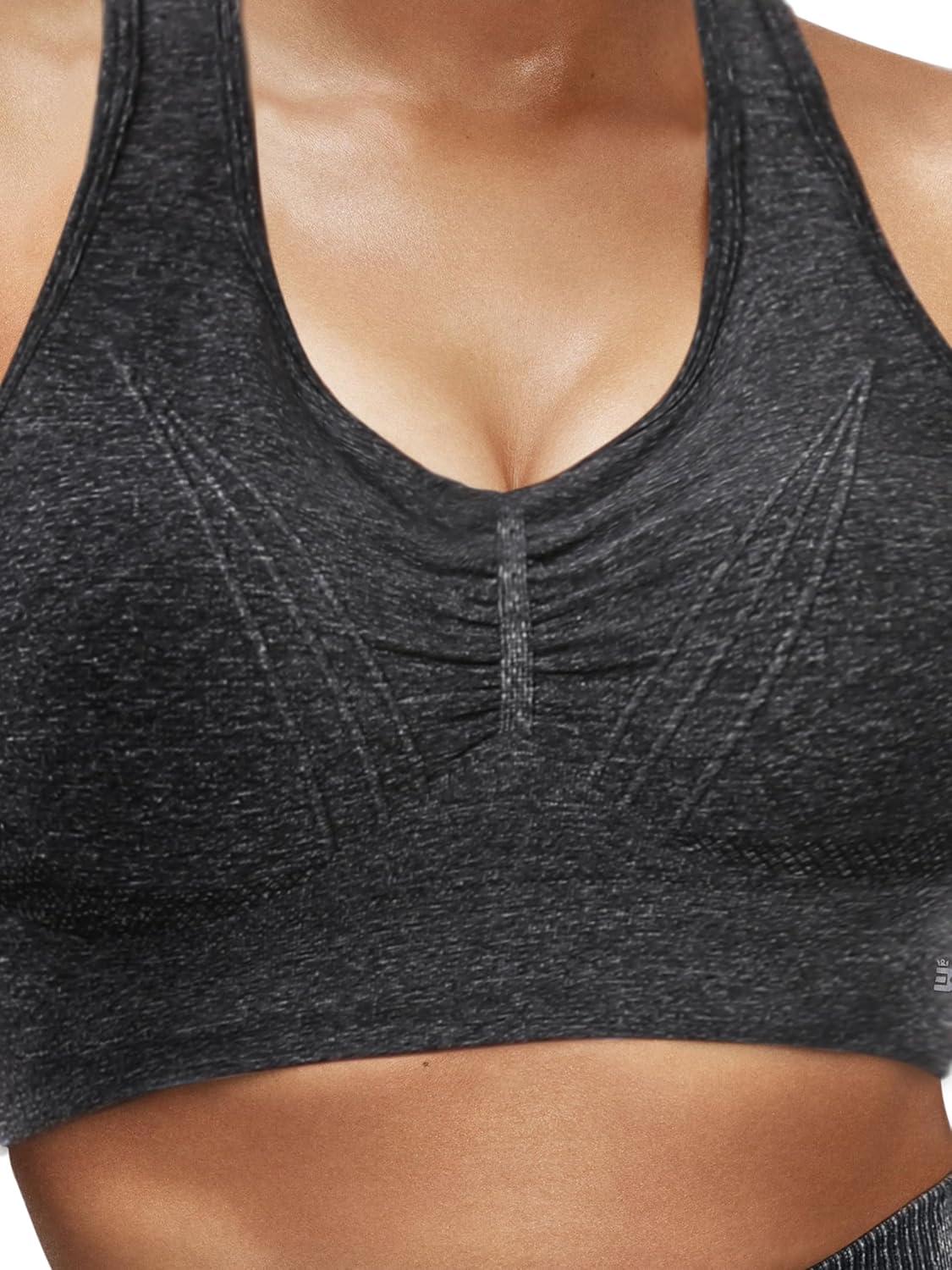 BROKIG 4-Able Lift Contour Sports Bra for Women, Wirefree Seamless Padded Medium Support Workout Gym Racerback Yoga Bras(Dark Grey)