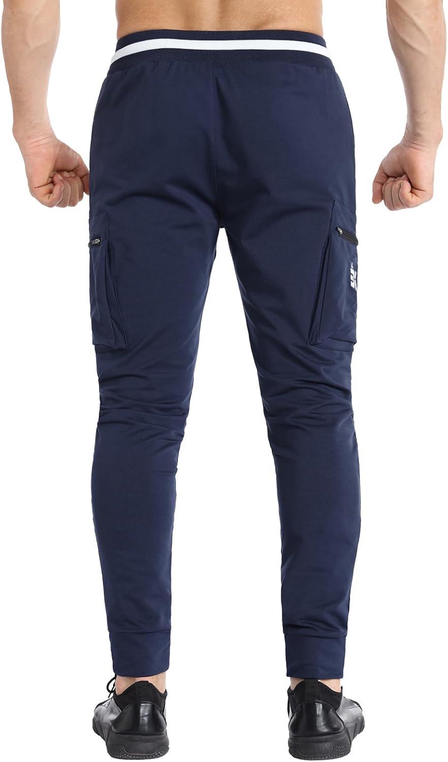 BROKIG Men Large Capacity Gym Joggers Pants with Zipper Pockets,Workout Tapered Casual Athletic Sweatpants Track Pants(Navy Blue)