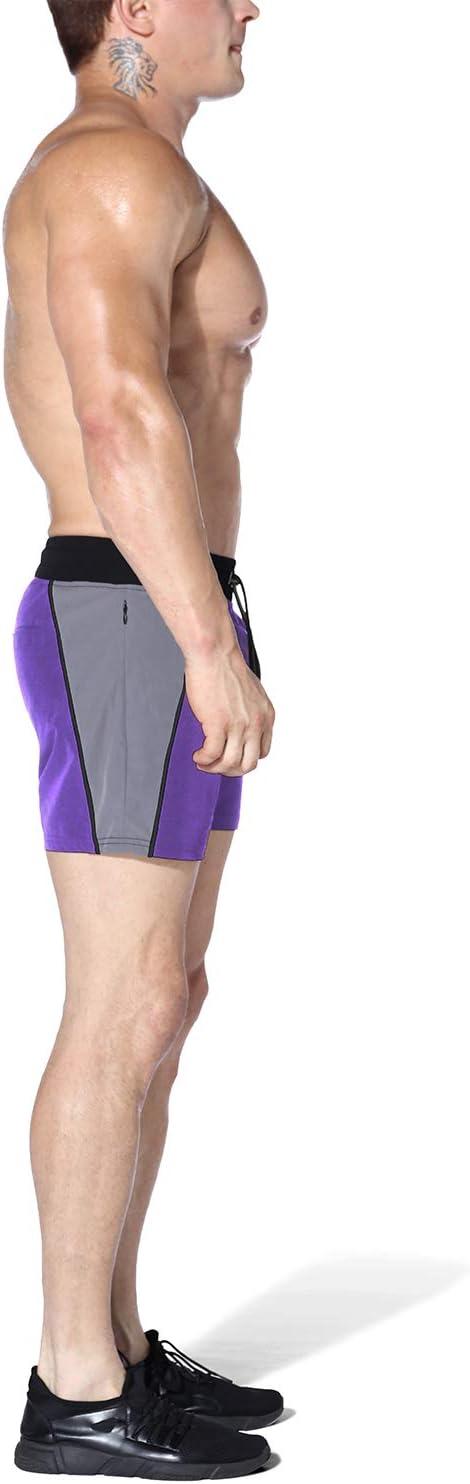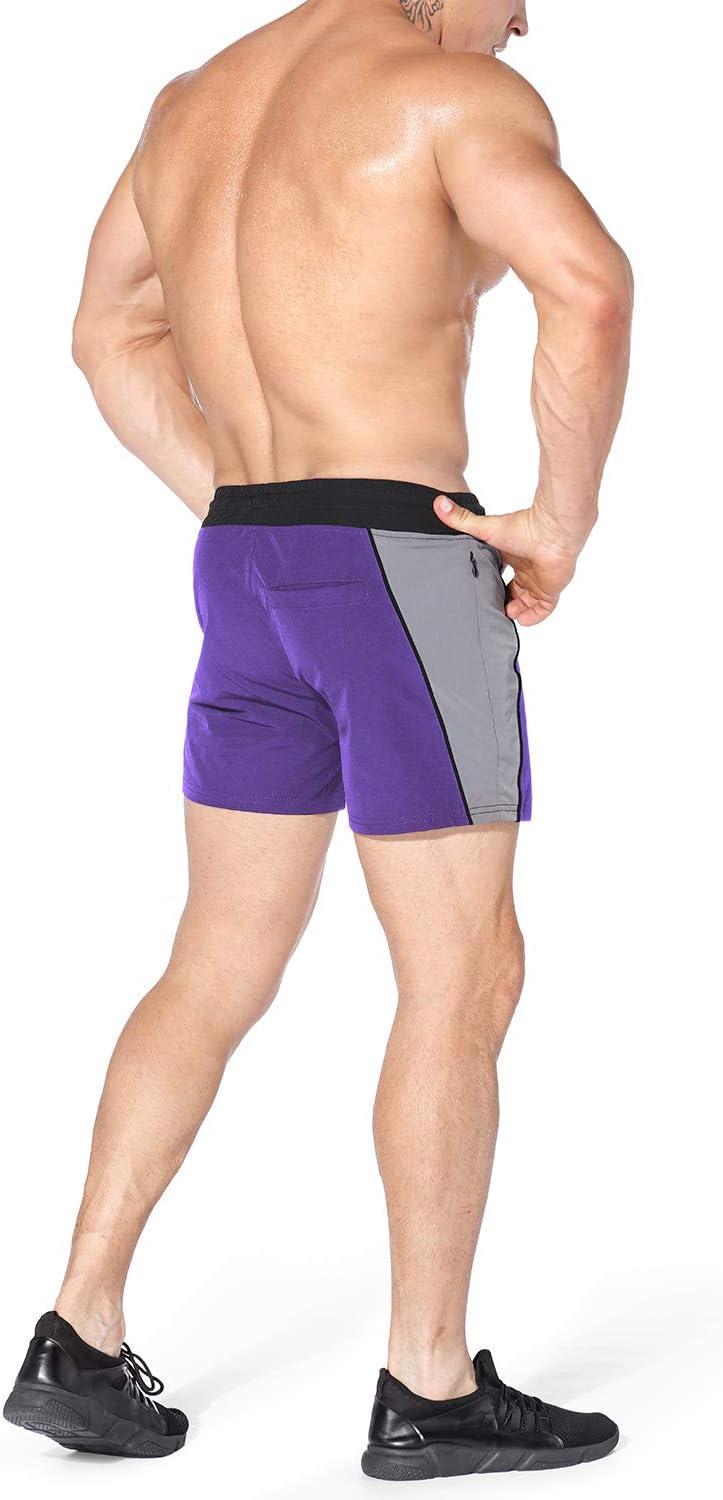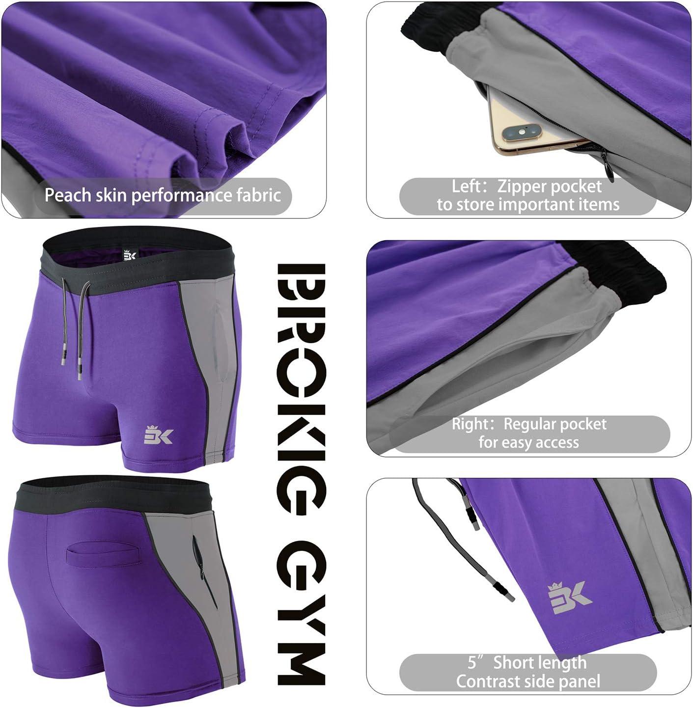 BROKIG Men’s 5″ Gym Bodybuilding Shorts Running Workout Lightweight Shorts Elastic Waistband with Pockets(Classic Purple)