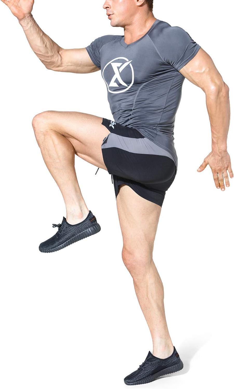 BROKIG Mens 5″ Lightweight Gym Bodybuilding Shorts Summer Workout Fitness Short Rear Zip Pocket(X-Large,Black)
