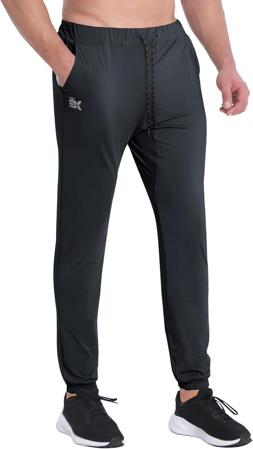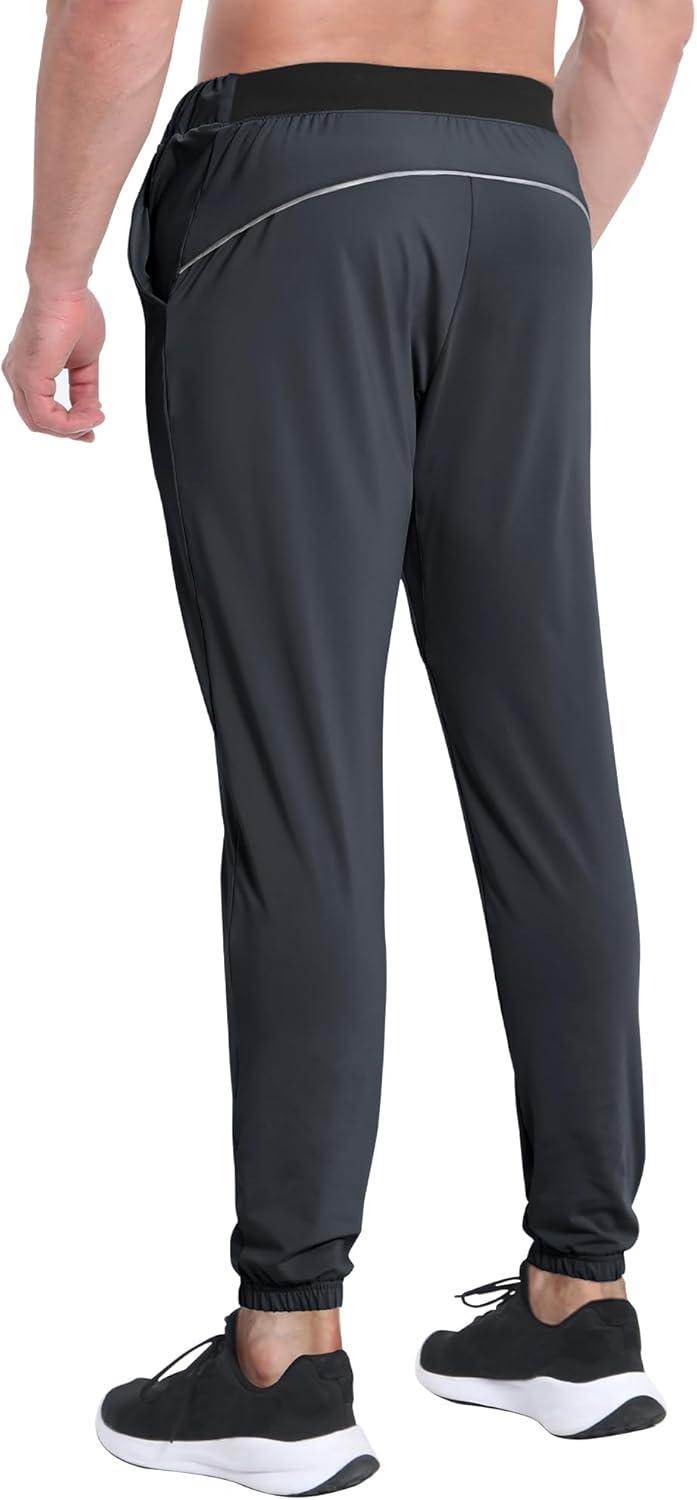 BROKIG Mens AI-Butt Gym Pants Stretch Lightweight Jogger Tapered Leg Workout Sweatpants Ankle Slim Athletic Sweat Pants(Black+light Gray)