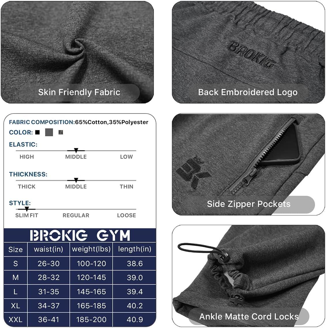 BROKIG Mens Ankle Cords Workout Jogger Pants, Slim Fit Gym Joggers Athletic Sweatpants for Men with Zipper Pockets(Black)