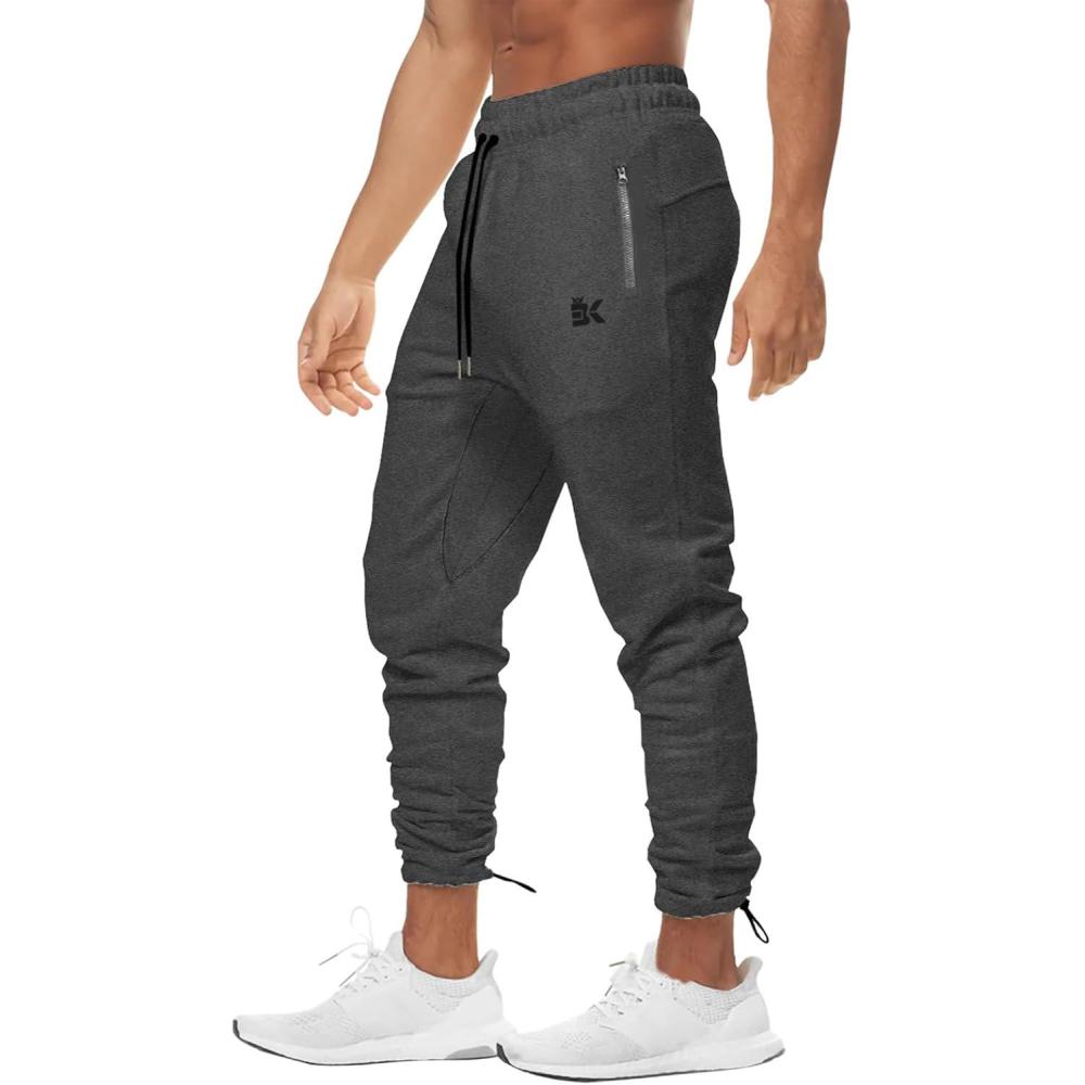 BROKIG Mens Ankle Cords Workout Jogger Pants, Slim Fit Gym Joggers Athletic Sweatpants for Men with Zipper Pockets(Dark Grey)