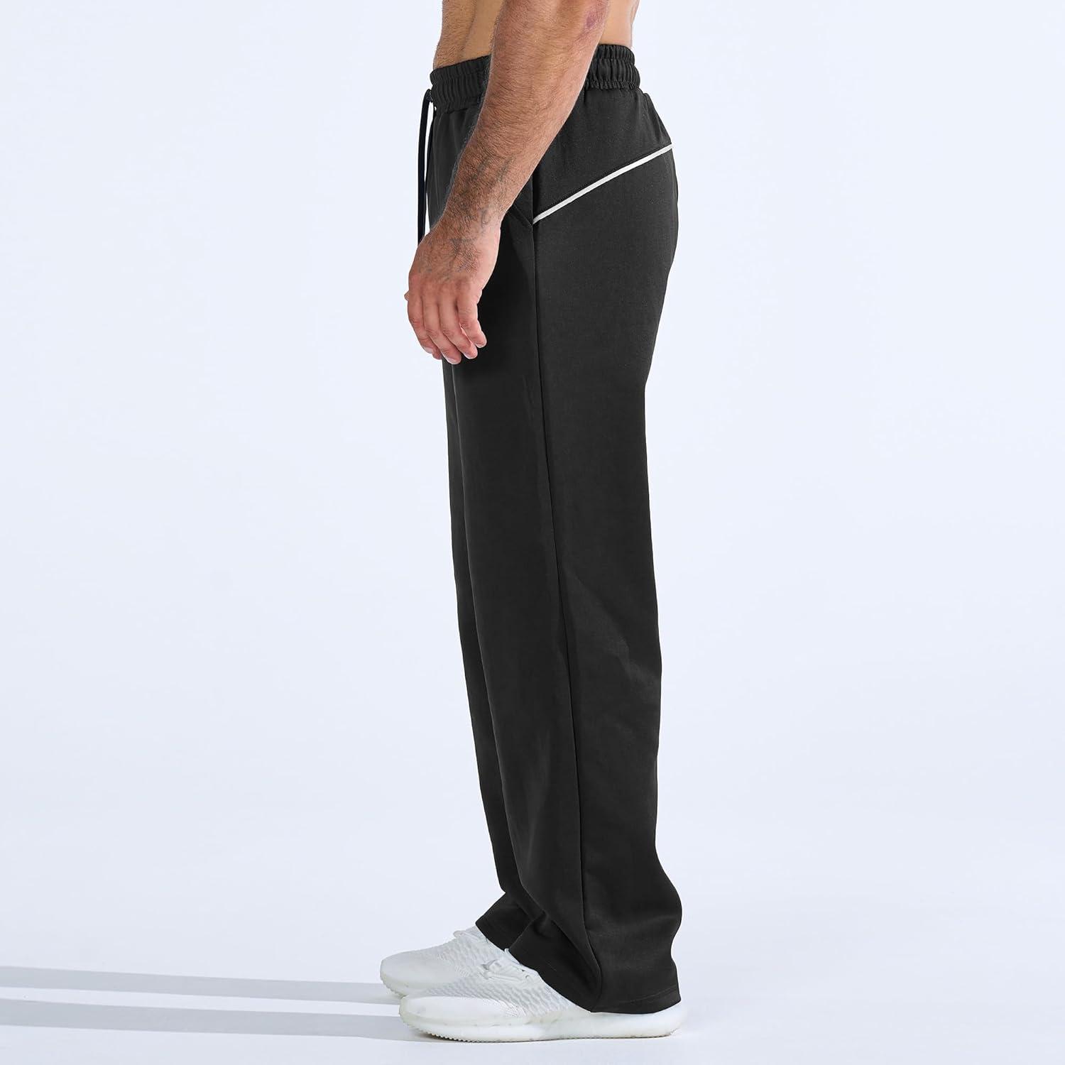 BROKIG Mens Buttlift Workout Sweatpants, Baggy Straight Leg Lounge Pants Open Bottom Track Sweat Pants with Zip Pockets(Black)