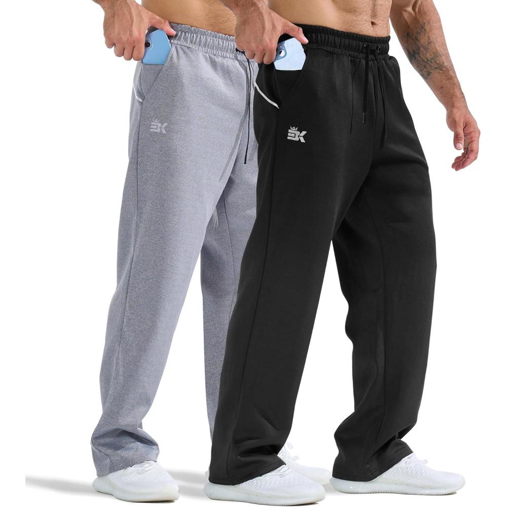 BROKIG Mens Buttlift Workout Sweatpants, Baggy Straight Leg Lounge Pants Open Bottom Track Sweat Pants with Zip Pockets(Black+light Grey)
