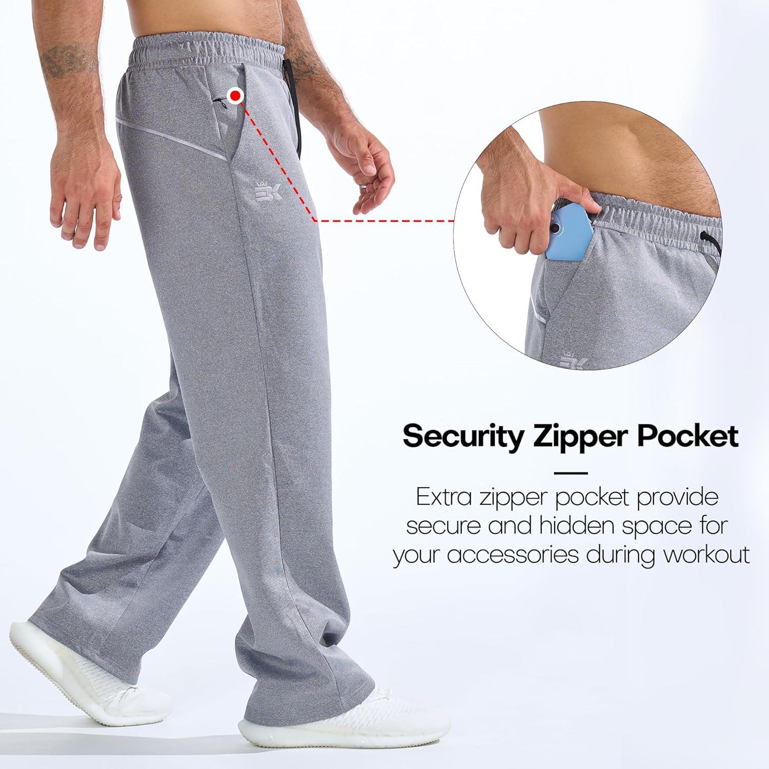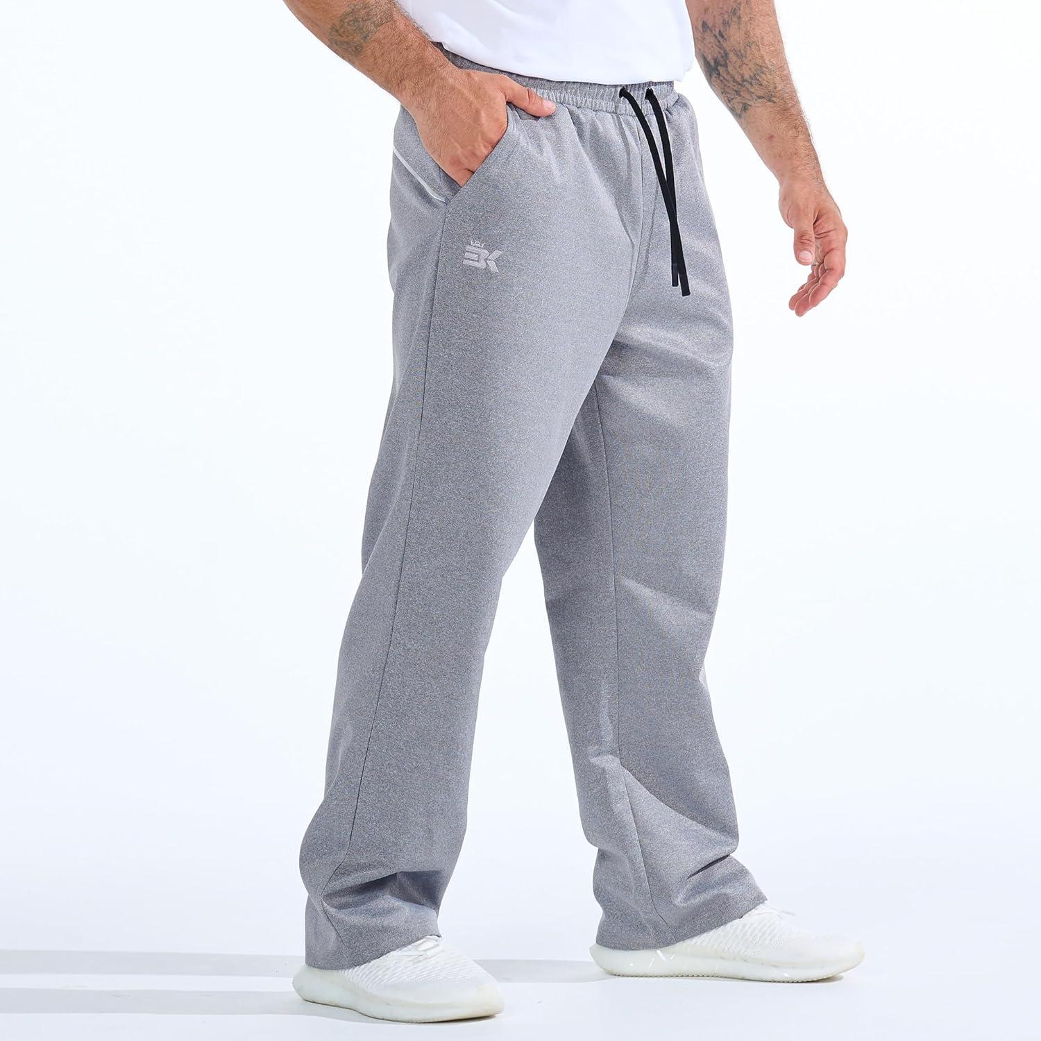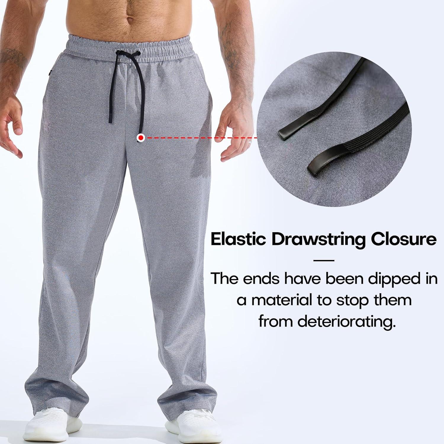BROKIG Mens Buttlift Workout Sweatpants, Baggy Straight Leg Lounge Pants Open Bottom Track Sweat Pants with Zip Pockets(Light Grey)