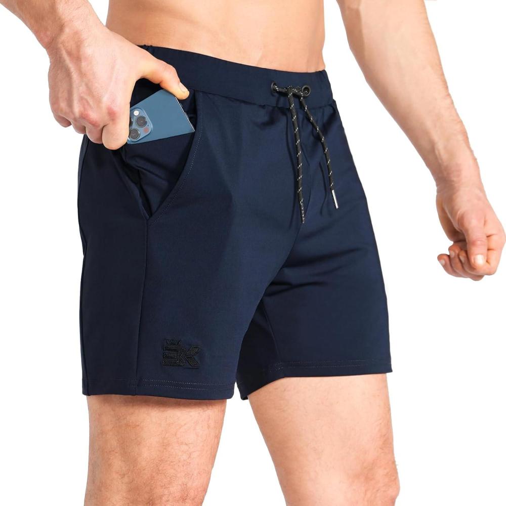 BROKIG Men’s Lightweight Gym Shorts,Bodybuilding Quick Dry Running Athletic Workout Shorts for Men with Pockets(Navy Blue)