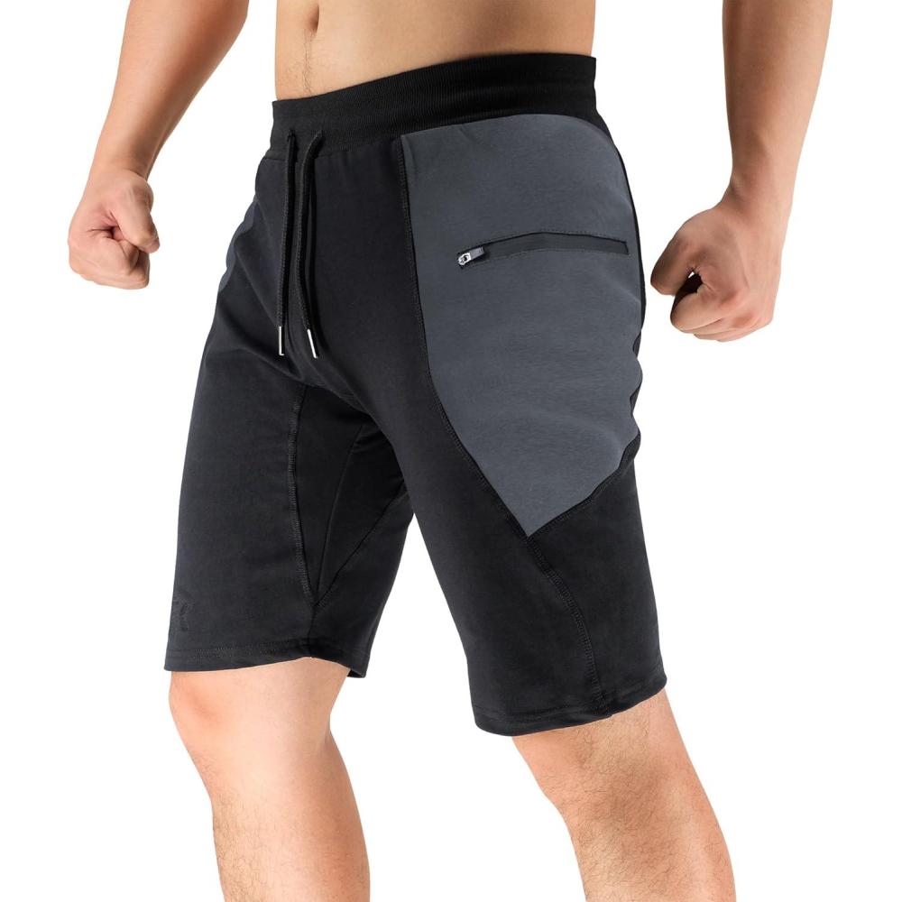 BROKIG Men’s Sidelock Gym Workout Running Sport Shorts with Zipper Pockets(Spliced Grey)