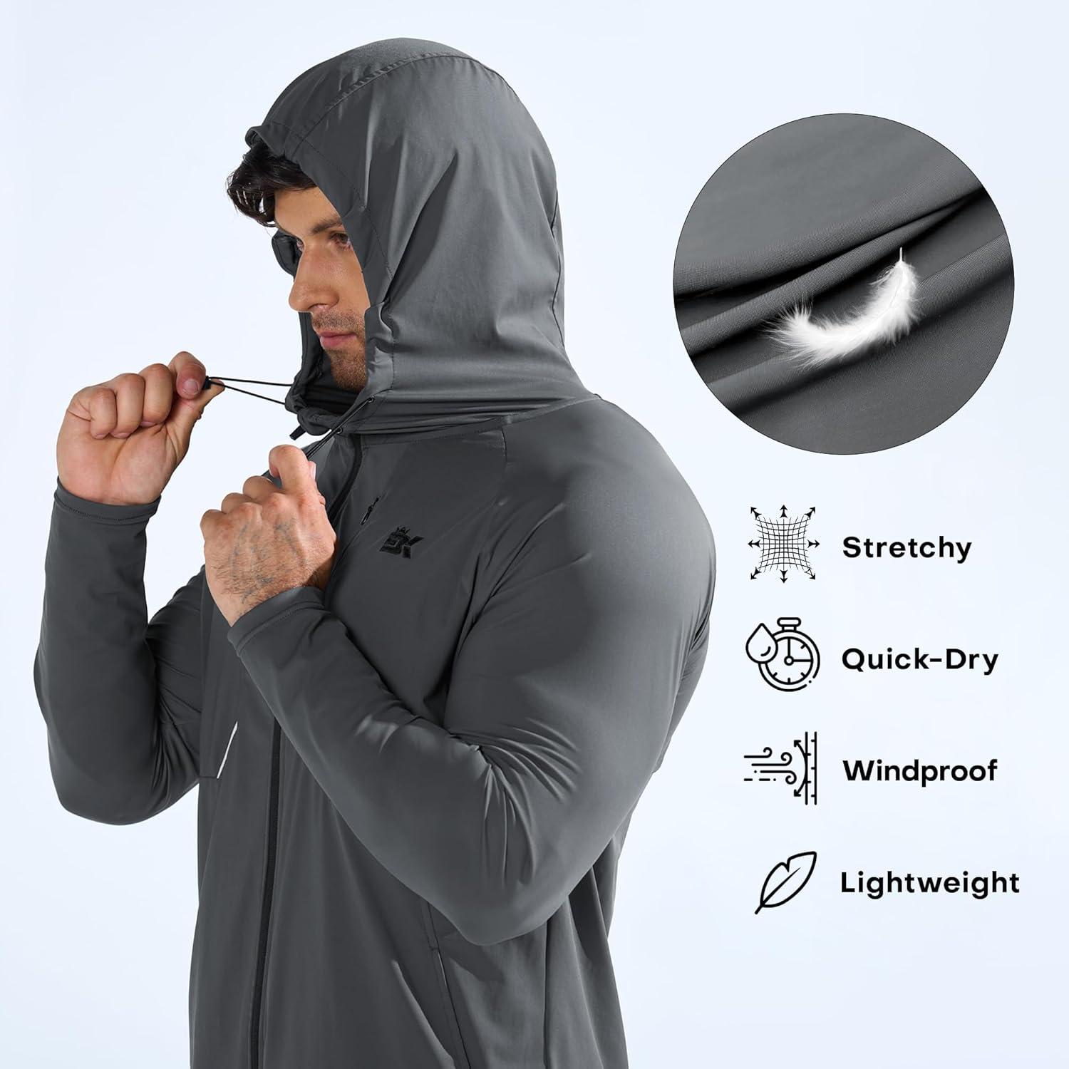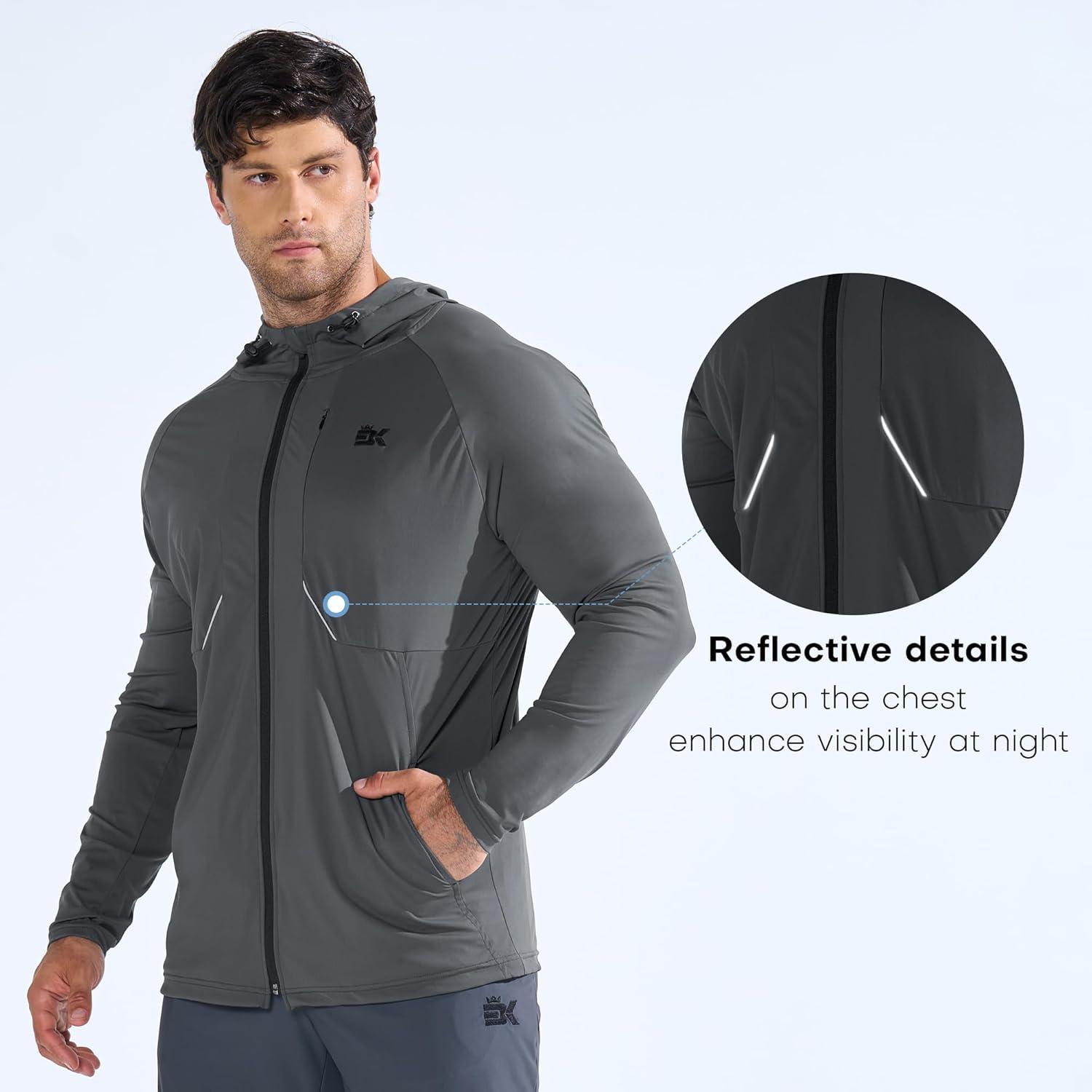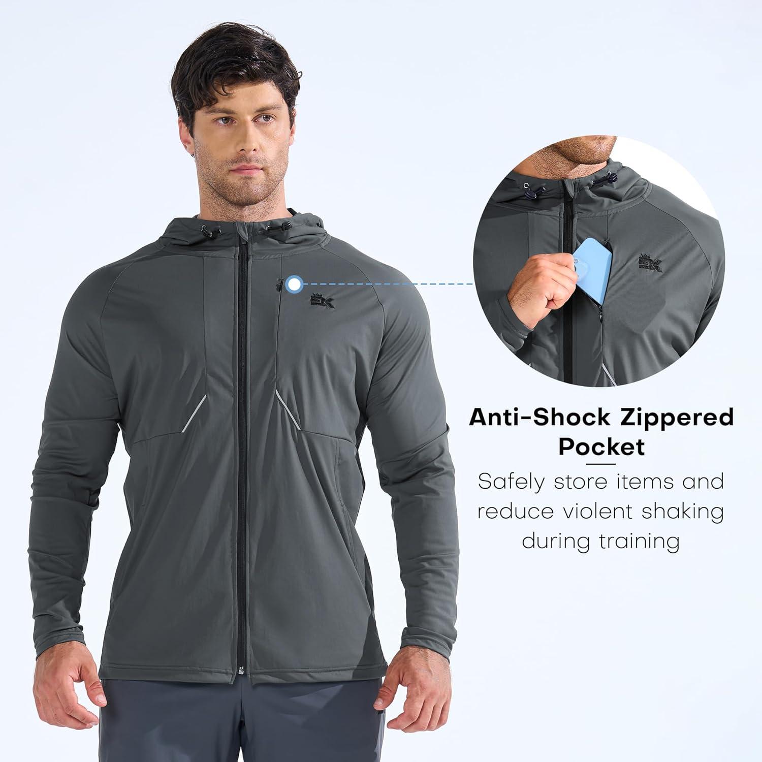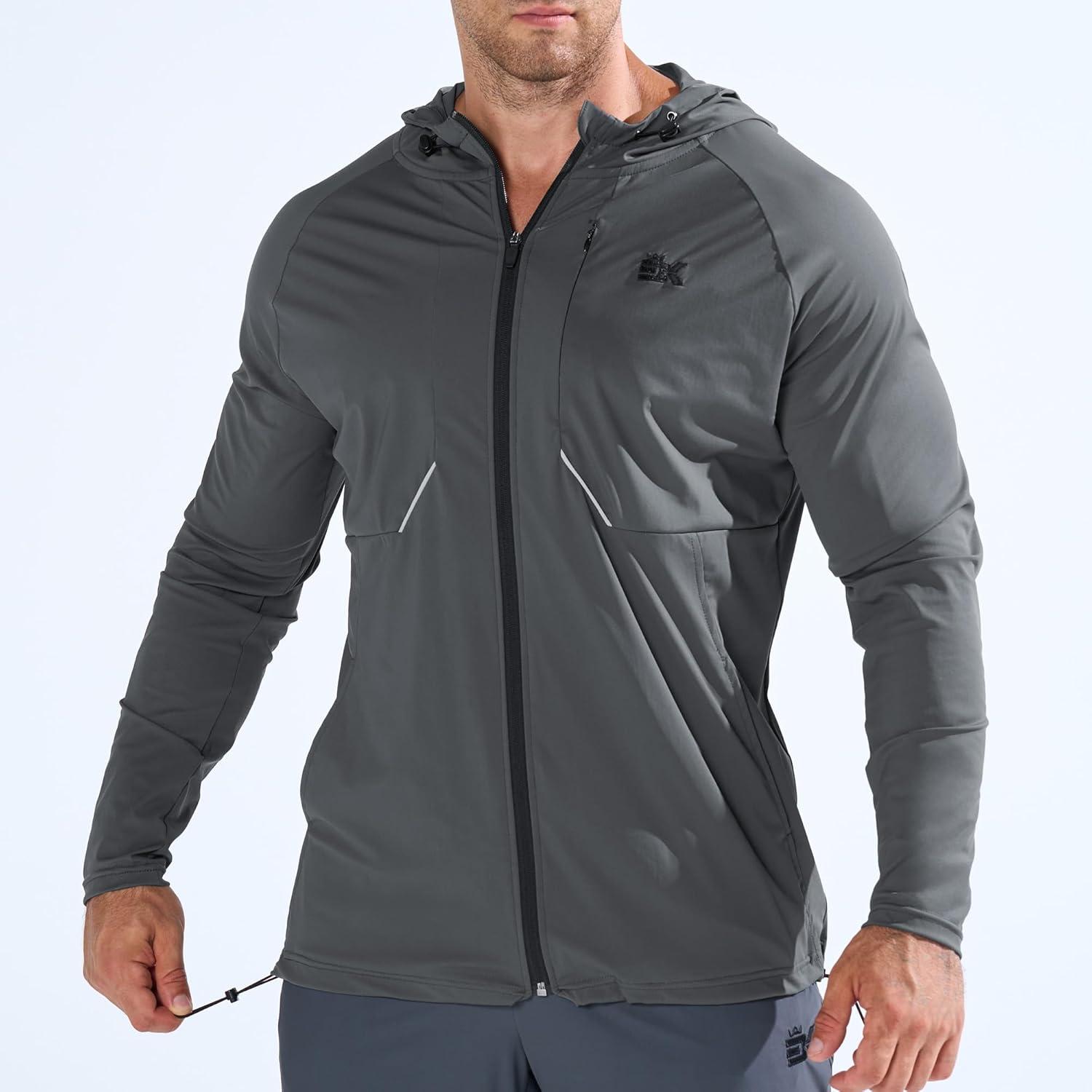 BROKIG Mens StealthZip Lightweight Running Jackets, Full Zip Workout Hoodie Track Windbreaker Athletic Gym Sweatshirts(Dark Grey)