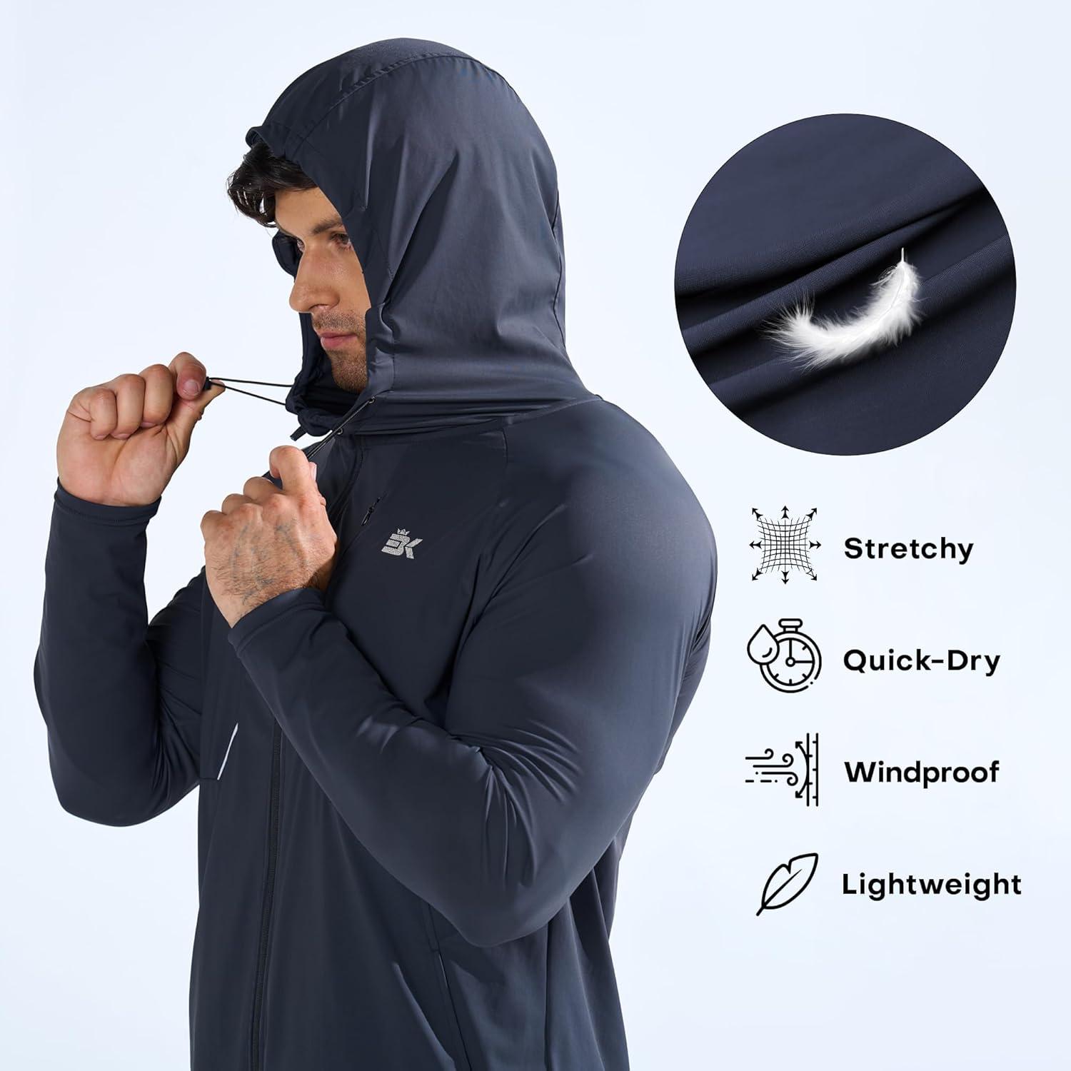 BROKIG Mens StealthZip Lightweight Running Jackets, Full Zip Workout Hoodie Track Windbreaker Athletic Gym Sweatshirts(Navy Blue)