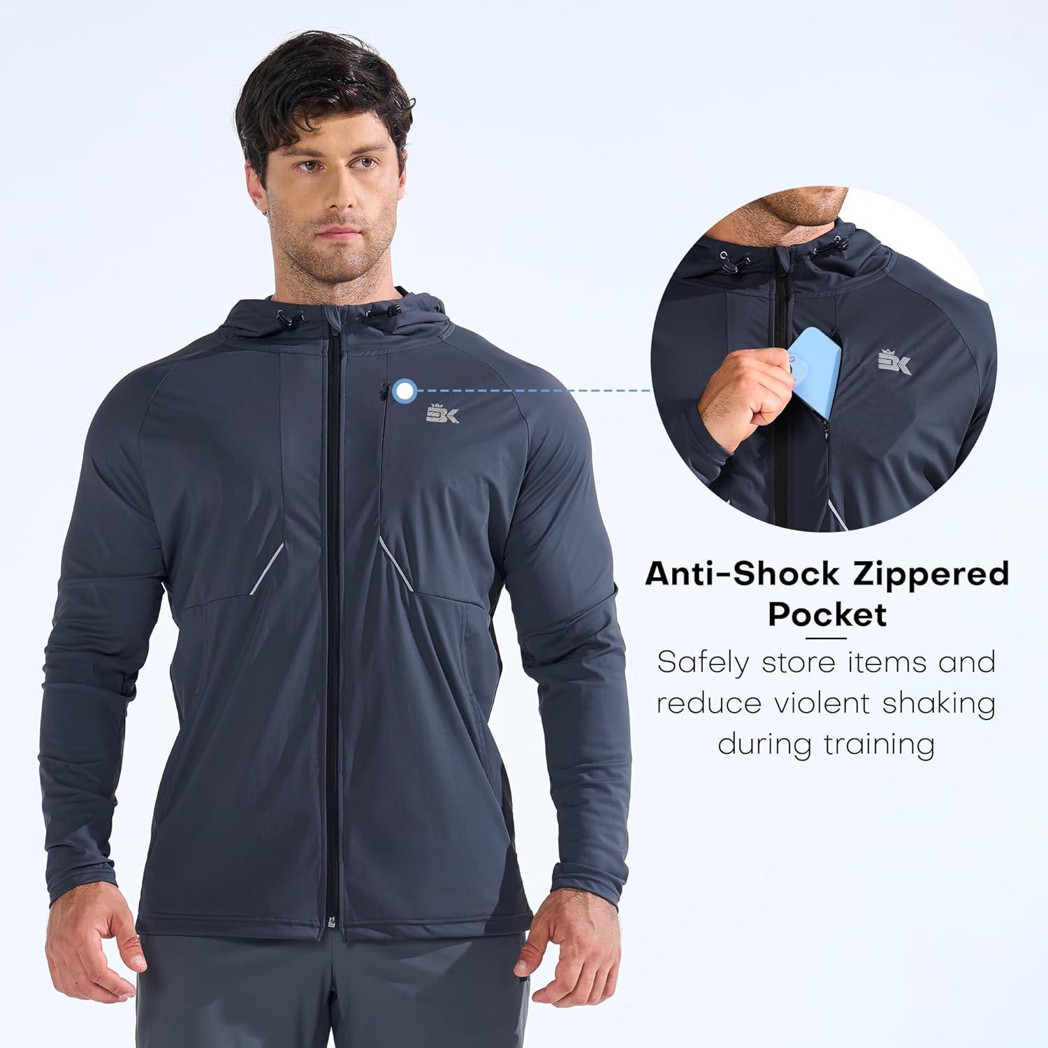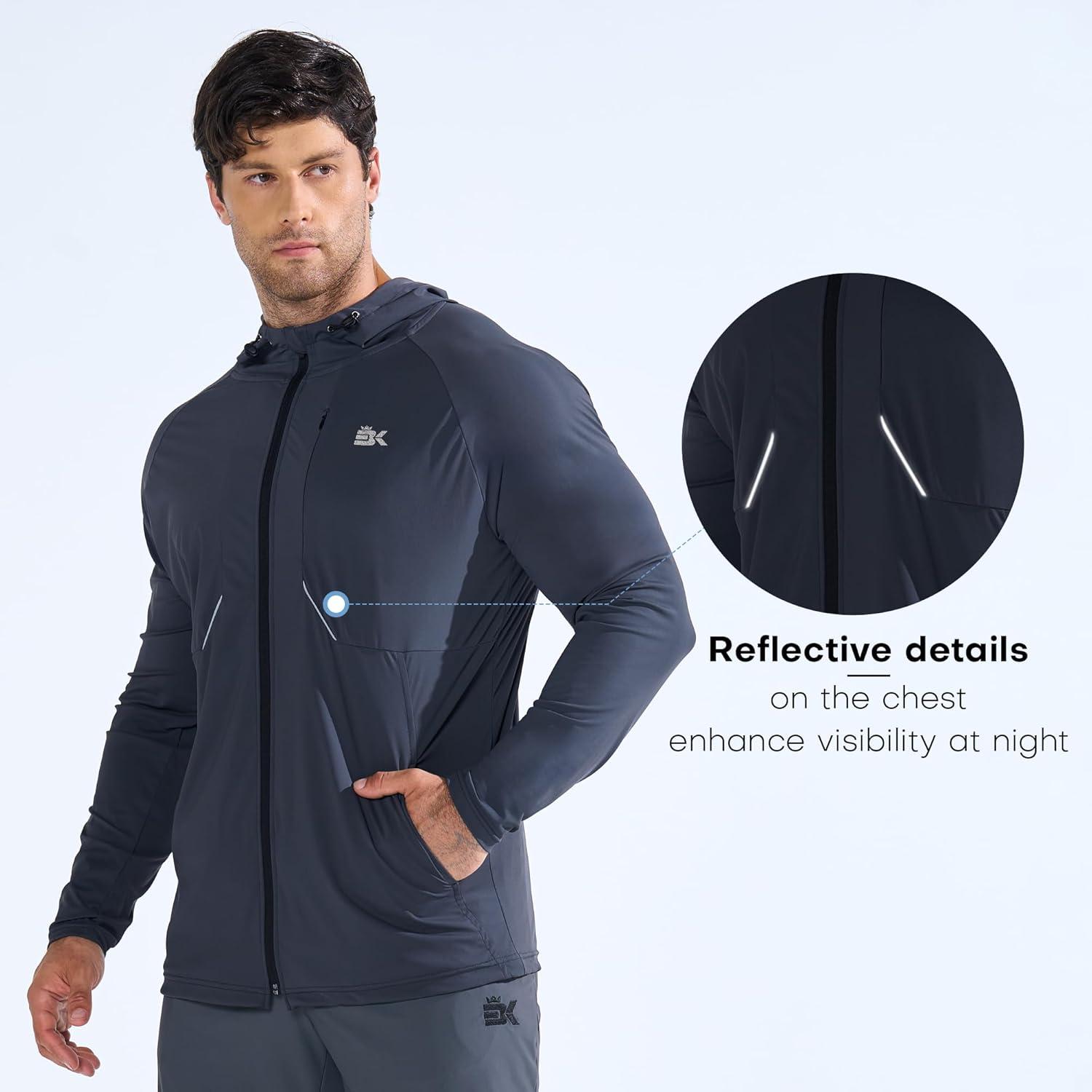 BROKIG Mens StealthZip Lightweight Running Jackets, Full Zip Workout Hoodie Track Windbreaker Athletic Gym Sweatshirts(Dark Grey)