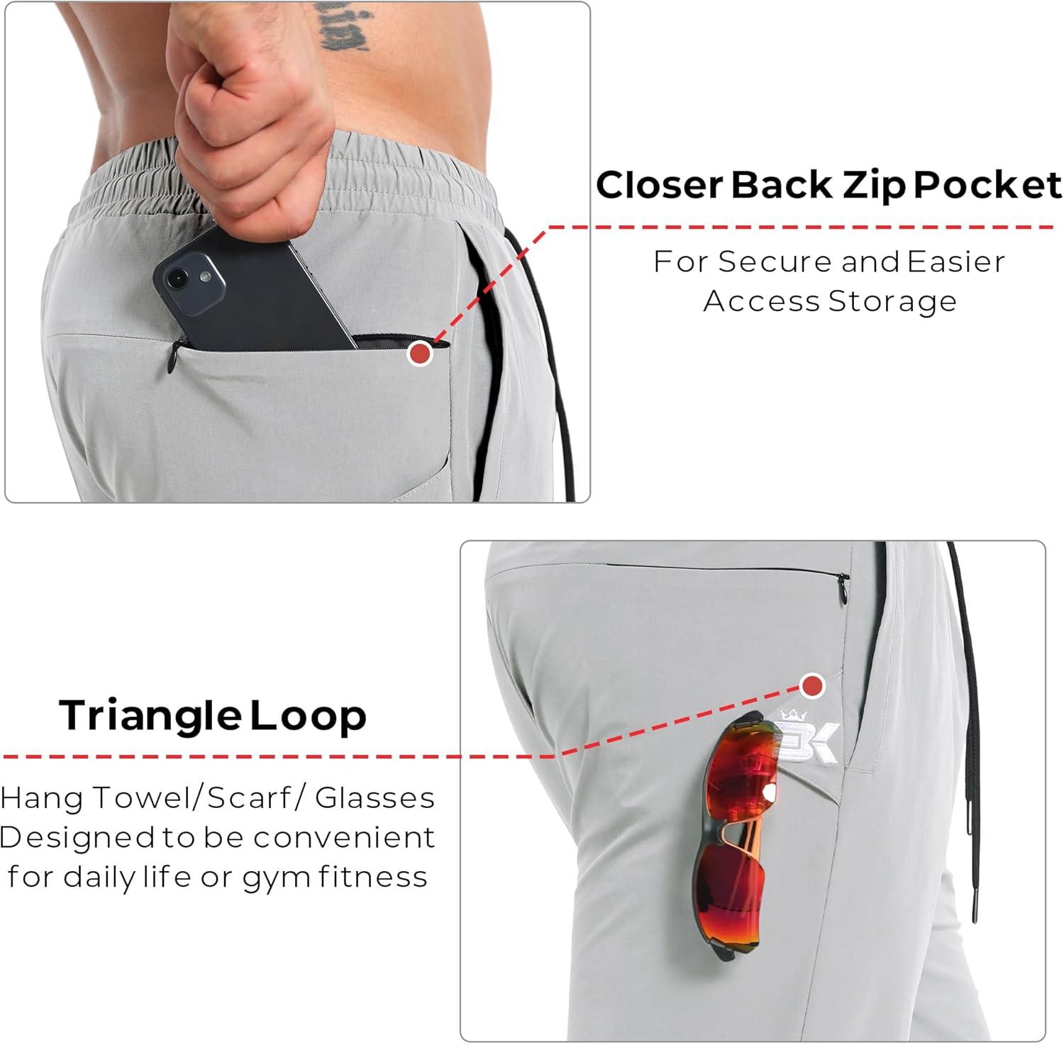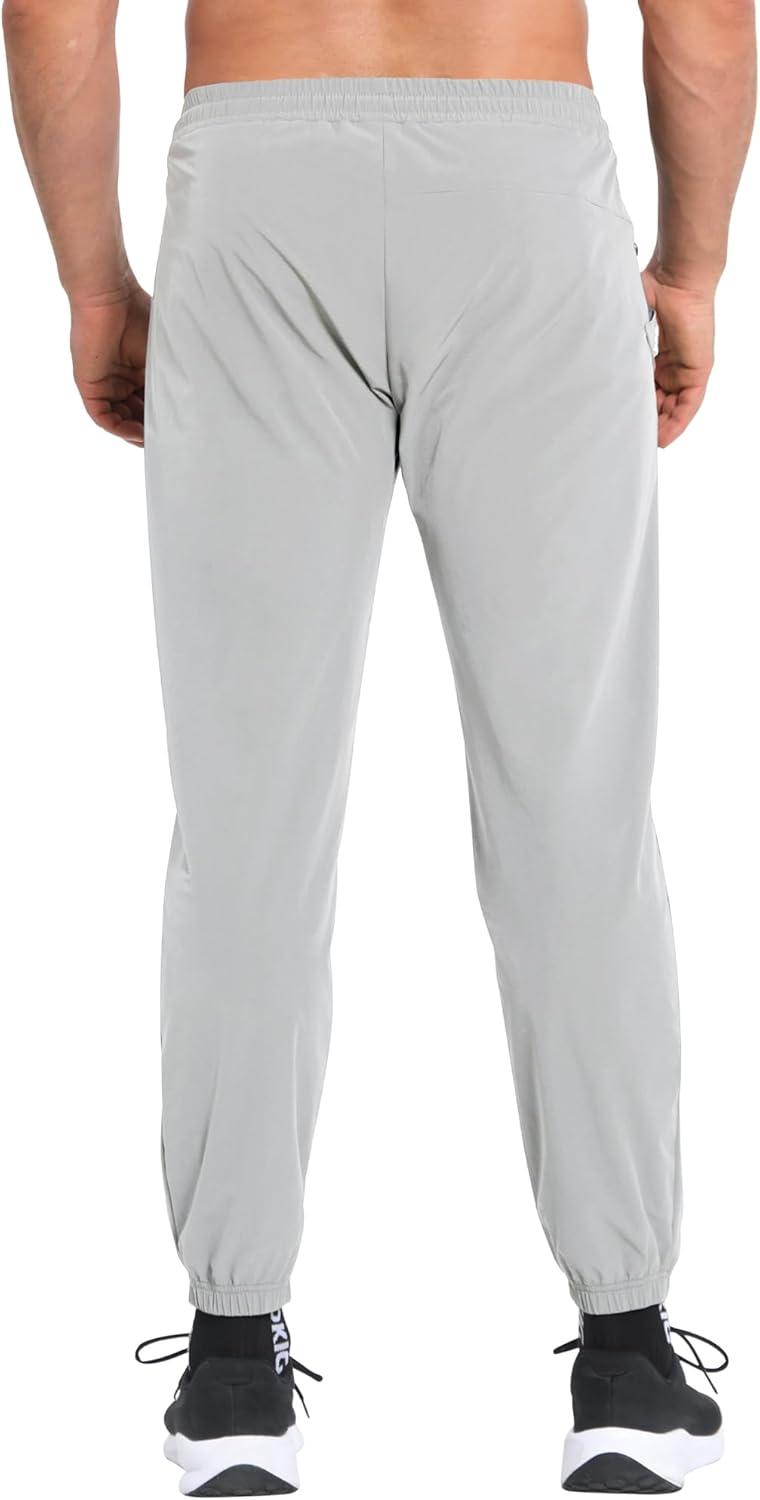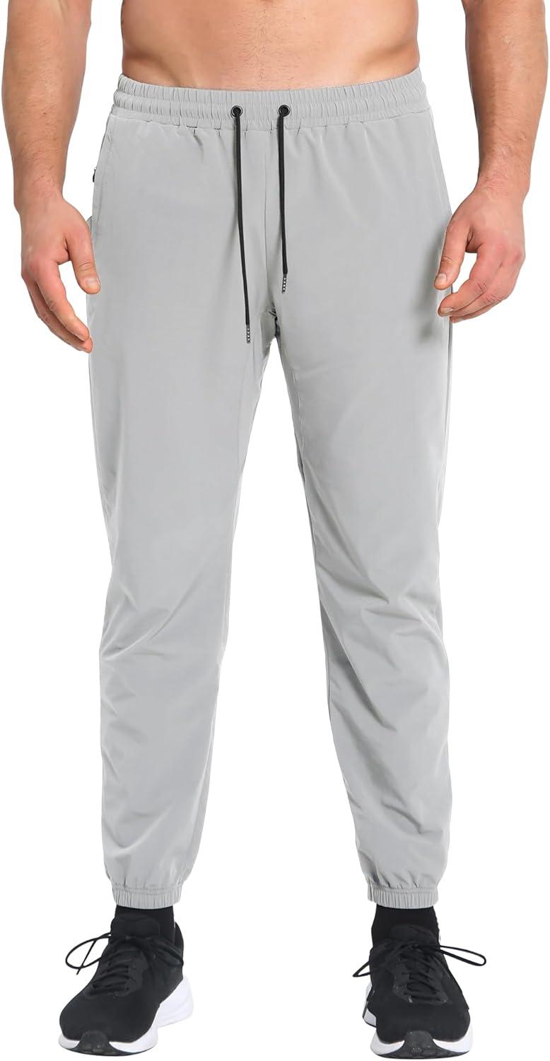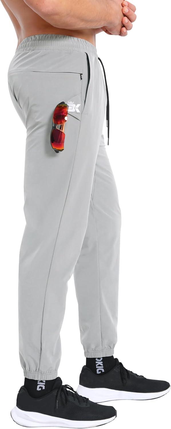 BROKIG Men’s Tapered Gym Joggers, Lightweight Training Cuffed Sweatpants Zipper Pocket, Slim Fit Athletic Running Pants(Light Grey)