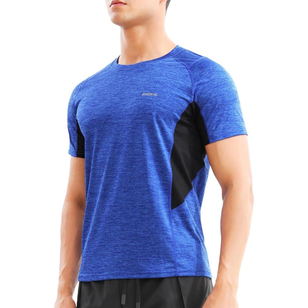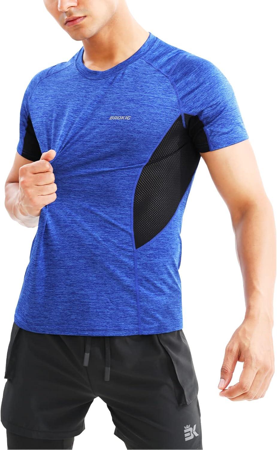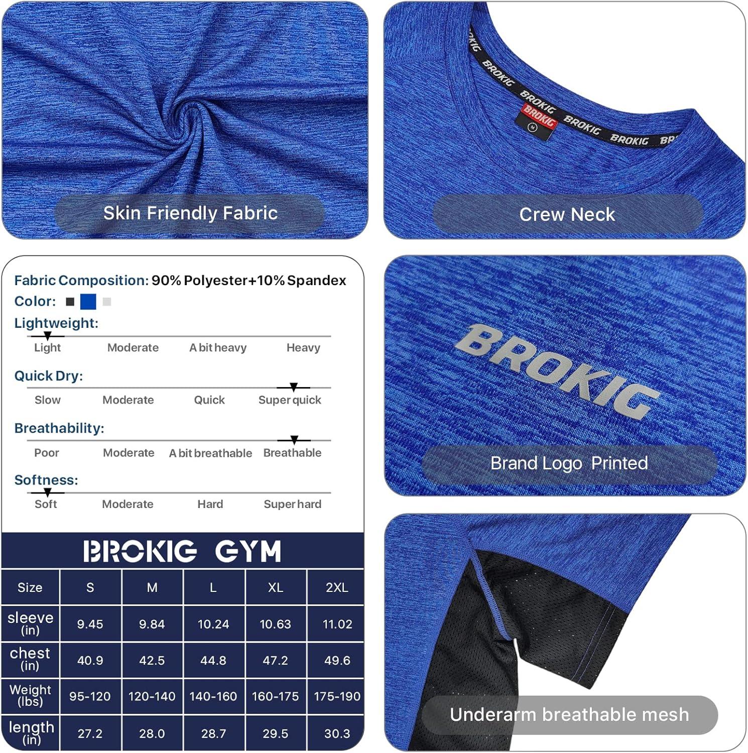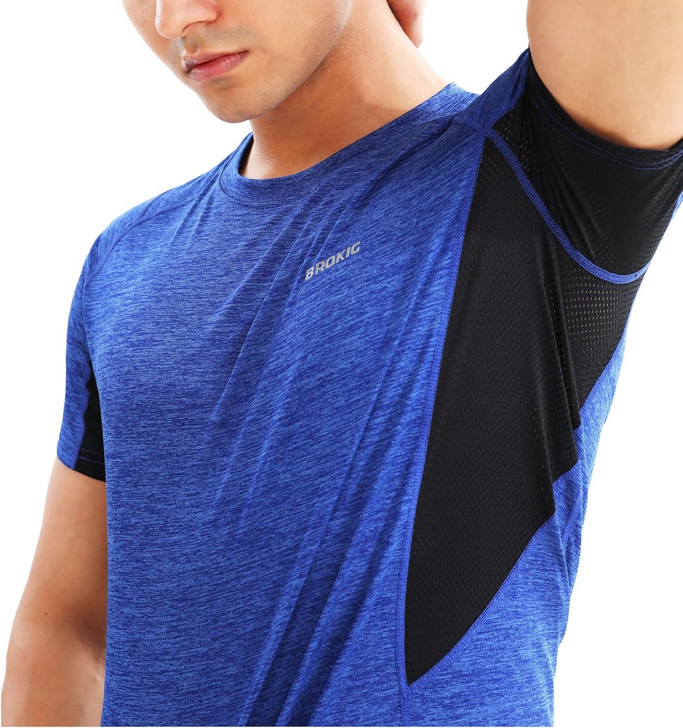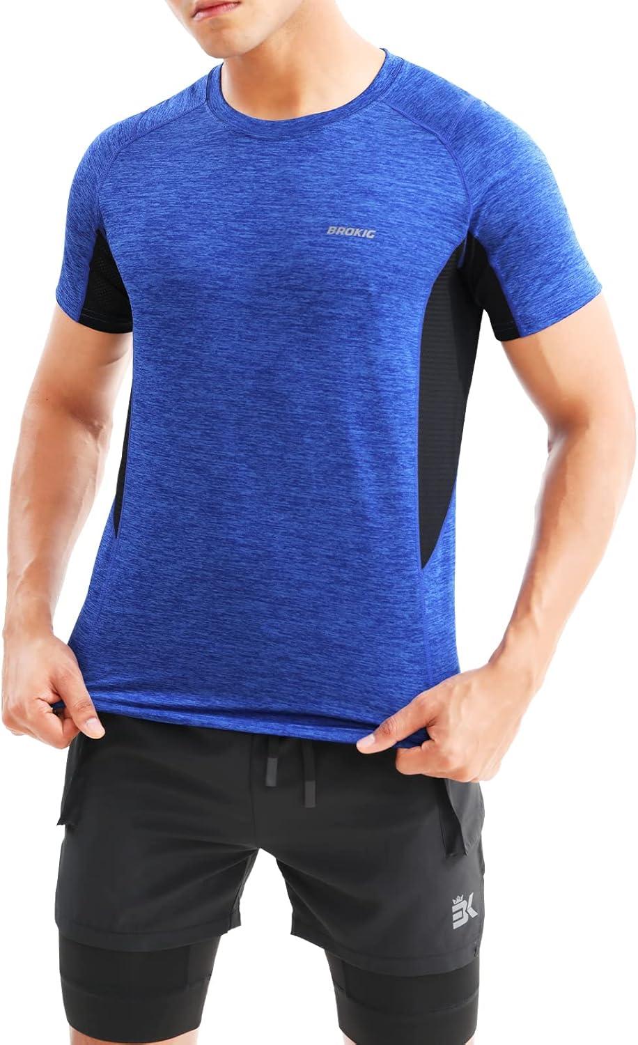 BROKIG Mens TDry Lightweight Gym Short Sleeve Shirts Workout Athletic T-Shirts Men Moisture Wicking(Dark Blue)