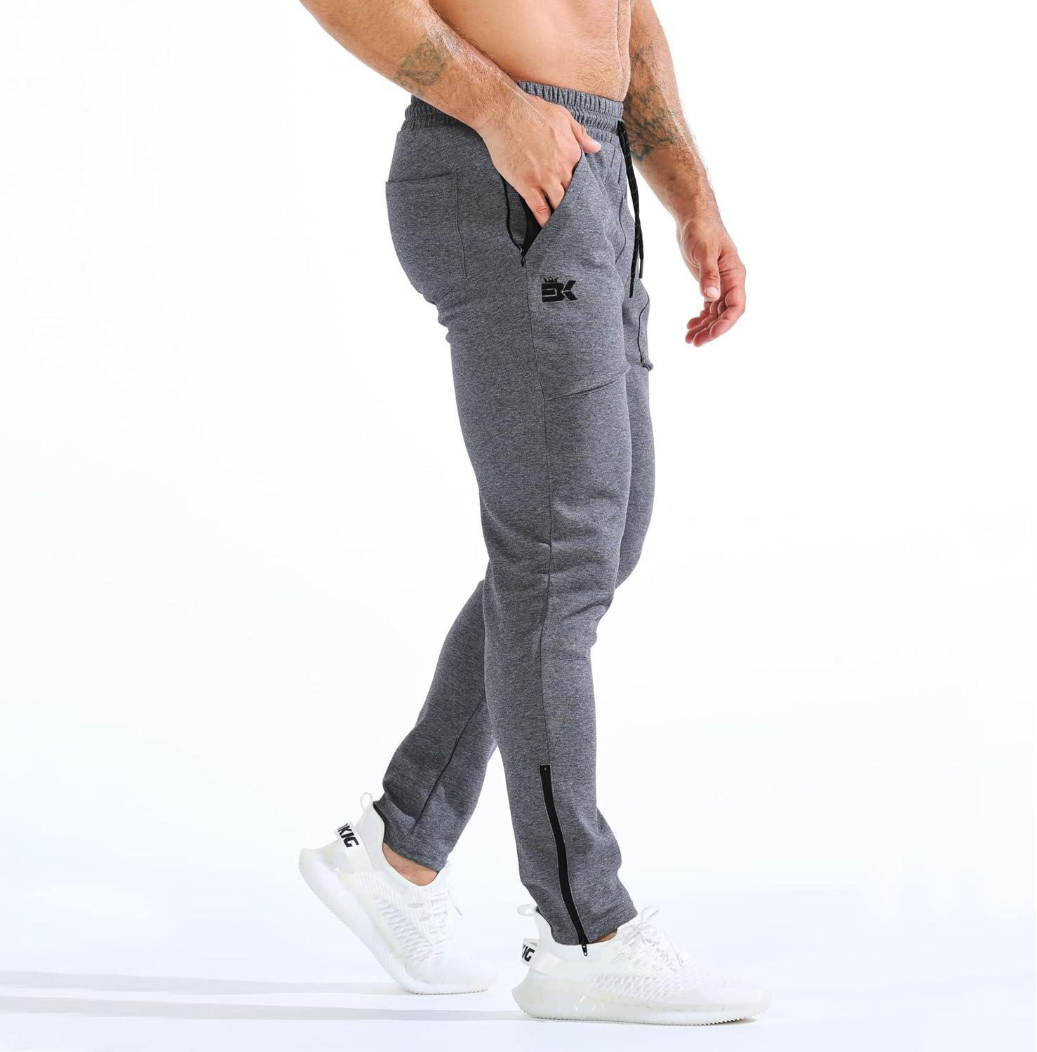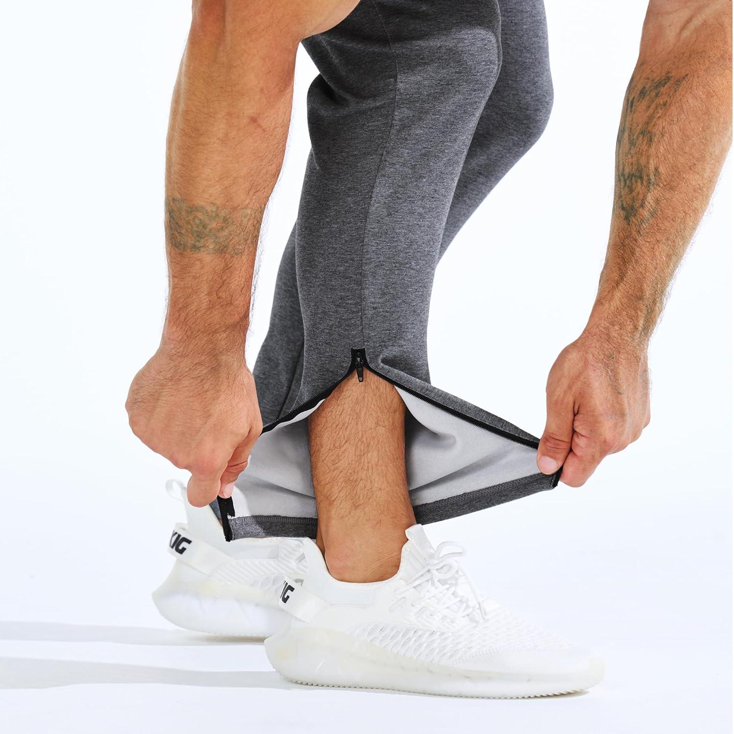 BROKIG Mens ZeroArmor Workout Running Jogger Sweatpants,Stretch Double Ankle Zipper Gym Pants Fitted Sweat Pants Pocket(Dark Gray)